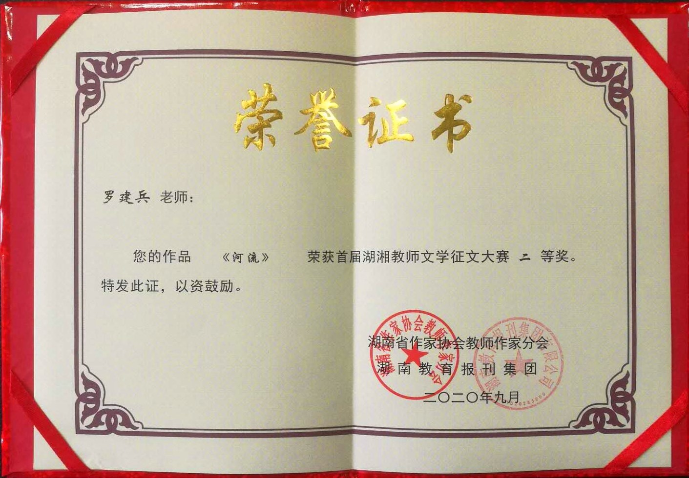 在刚刚结束的首届湖湘教师征文大赛中,beat365学报编辑部罗建兵老师的诗歌《河流》获得二等奖。