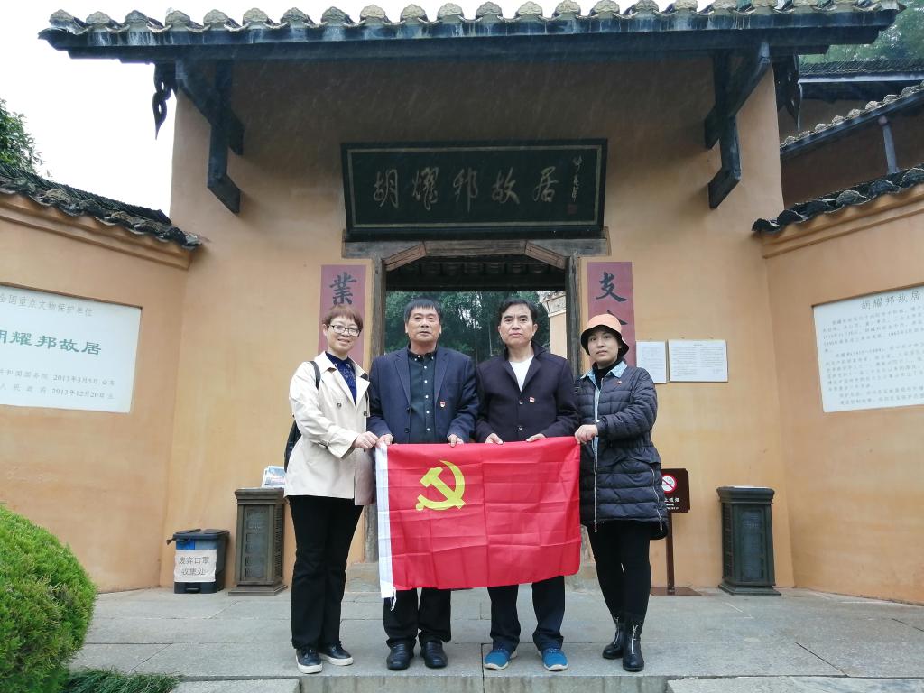 | 党员在胡耀邦旧居前合影 |