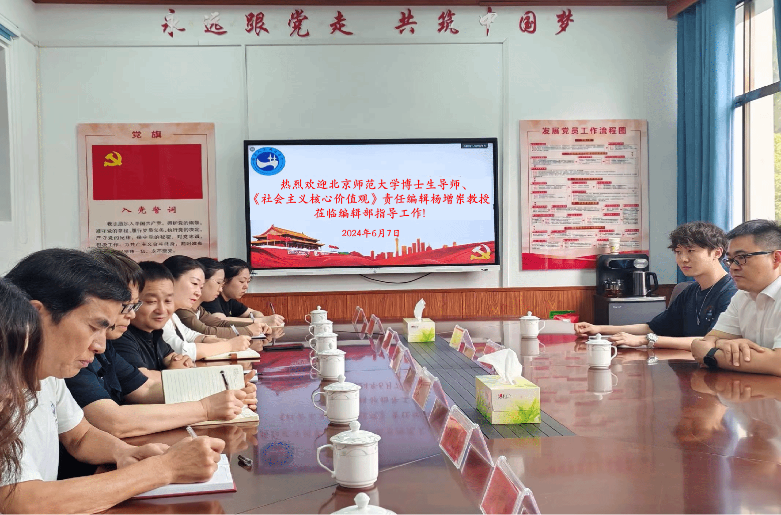 6月7日下午,北京师范大学博士生导师、《社会主义核心价值观》责任编辑杨增岽教授应邀来beat365指导交流,北京师范大学博士在读生修政陪同出席。指导交流会议在beat365若谷楼206召开,学报编辑部全体人员参加,学报编辑部主任杨国辉教授主持会议。