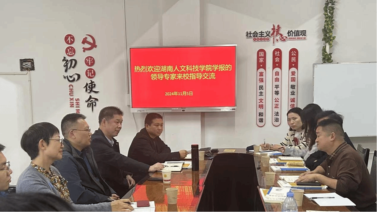 2024年11月5日,学报编辑部全体前往邵阳学院期刊社开展了一场以“学报高质量发展”为主题的交流学习活动。此次活动由邵阳学院副校长黄秋生教授主持。黄秋生对学报编辑部一行表示热烈欢迎,并希望通过此次活动加强兄弟单位之间的学术交流与业务合作。