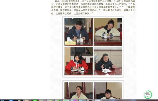 6、12月2日,法学院实习学生在实习单位通过座谈和研讨等方式开展“宪法宣传周” 多种宣传和学习活动。参加师生有163人次。