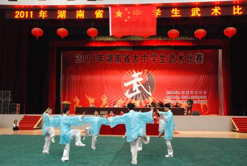 3月24-28日,湖南省大中学生武术比赛在beat365隆重举行,来自全省各地市的22支大中学校代表队参加了比赛。