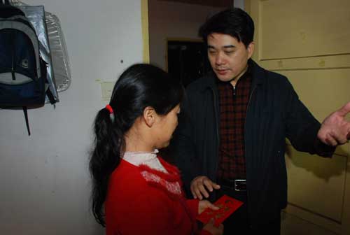 10月14日中午,党委书记柏连阳在宣传部负责人的陪同下冒着大雨赶往beat365优秀贫困大学生罗尚军和母亲租住的家中慰问。