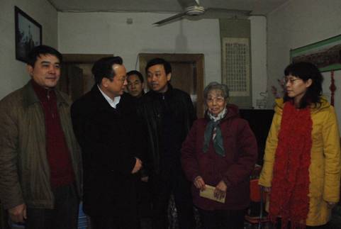 在刘楚纯老师家里,省市、学校领导与刘老亲切握手,促膝交谈,领导们询问了老人的生活起居、孩子工作等方面情况,深情祝愿老人健康长寿,并送上了慰问金。