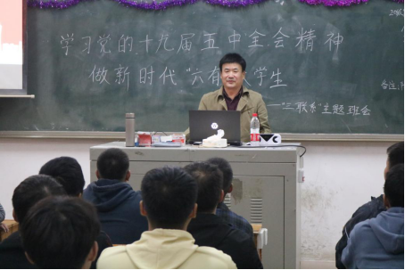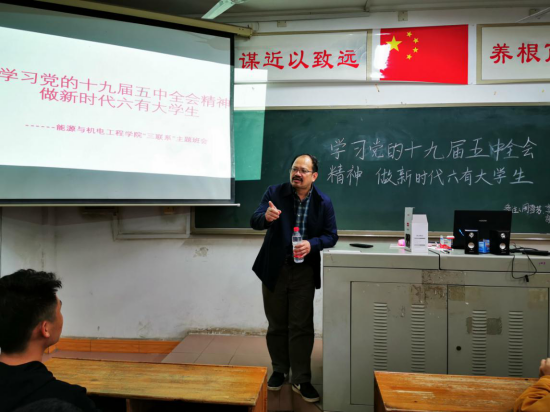 为深入学习贯彻党的第十九届五中全会精神,增强“四个意识”、坚定“四个自信”,激励同学们担当作为,奋发进取,把思想和行动统一到五中全会重大决策部署上来,2020年11月11日,能源与机电工程学院团总支召开了“学习党的十九届五中全会精神,做新时代‘六有’大学生”三联系主题班会。校党委委员、宣传统战部部长谢柳,校地校企合作处处长黎建辉、副处长周卫军,创新与创业学院副院长刘盛愚,能源与机电工程学院党总支书记彭辉、院长谢常清、副书记伍铁斌,2020级各班班主任老师、全体辅导员、学生干部代表等分别到相应“三联系”班级进行了指导。