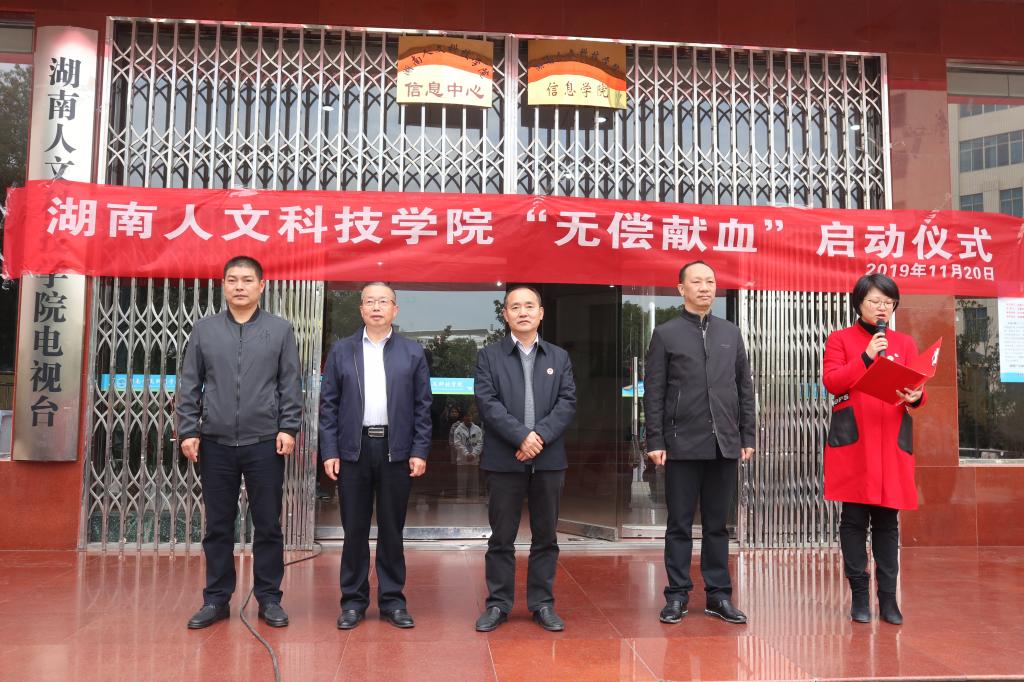 11月20日中午,beat3652019年“无偿献血”宣传月活动启动仪式在养根楼前坪举行。校党委委员、副校长刘铁峰出席,市中心血站站长王华良、工会主席肖磊、采血1科主任梁湘军和200余名志愿者一起参加仪式。校团委副书记刘佳主持启动仪式。