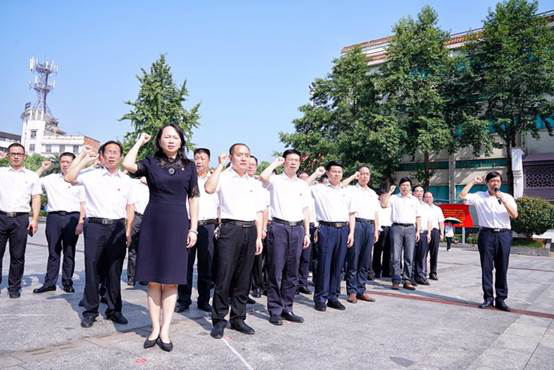 郭军一行向蔡和森“光辉的一家”群雕敬献花篮,深切缅怀革命先烈,表达敬仰之情。全体人员在群雕前举起右拳,重温入党誓词,庄严宣誓,愿为共产主义事业奋斗终身。