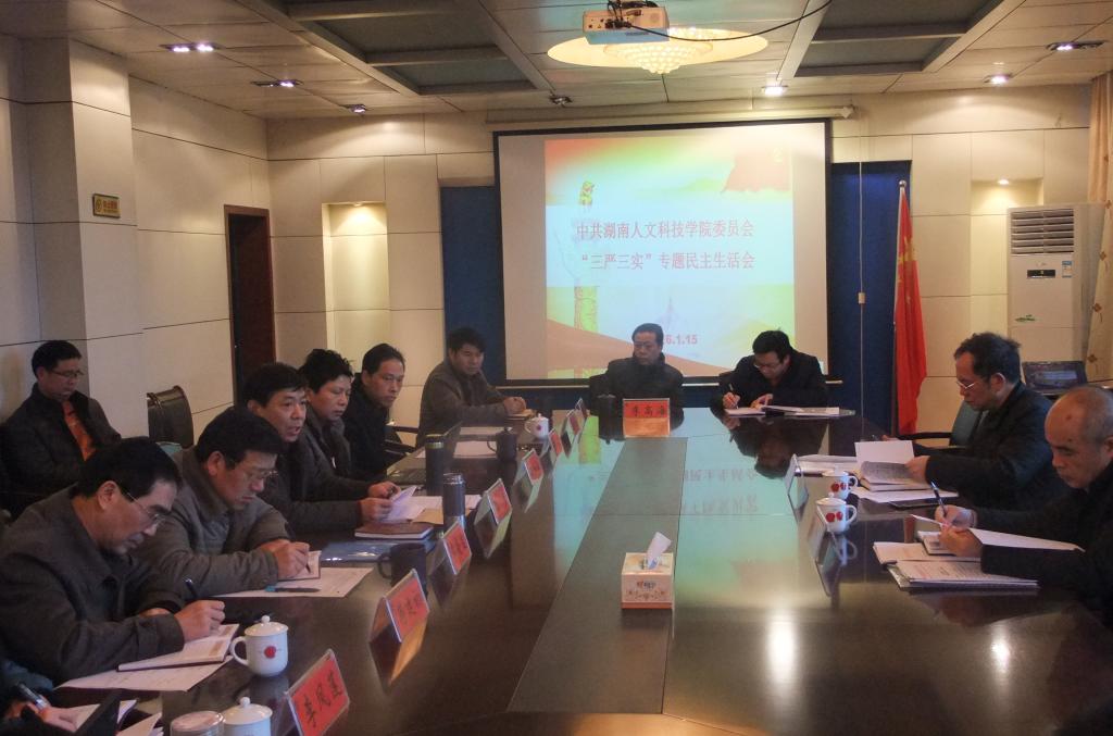 1月15日,学校党委班子召开“三严三实”专题民主生活会。湖南省教育厅党组成员、工委委员、副厅长葛建中和省教育厅高教处负责人出席会议,学校党政领导班子成员参加会议,纪委、党政办、组织部、宣传部等部门主要负责人列席会议。会议由党委书记郭军主持。