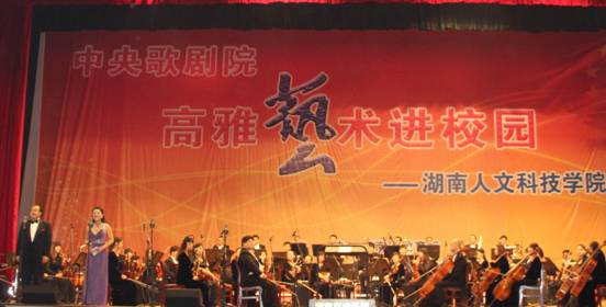 10月26日晚7点30分,2013年高雅艺术进校园活动------中央歌剧院beat365中文官方网站专场演出在beat365体育馆隆重举行。市委常委、宣传部部长伍美华,校领导郭军、刘铁铭、李凤莲、石潇纯,各系部师生代表,以及来自娄底职业技术学院、潇湘职业技术学院的师生代表,社会各界有关人士3000多名观众欣赏了歌剧演出。