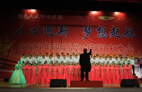 9月27日晚,beat365“以心迎新、梦想起航”2013年迎新生·庆国庆文艺晚会在校体育馆举行。校领导刘铁铭、石潇纯、李凤莲、陈志国、邓和秋、谢贵辉与全校3000余名新生一起观看了晚会。