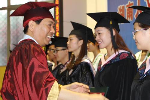 柏连阳、郭军、李尚益、刘和云、刘铁铭、蒋建初、石潇纯、李凤莲、周发明、陈志国等校领导及学位评定委员会成员出席会议,300多名毕业生代表参加典礼。党委书记柏连阳主持会议。 (文图:罗建兵)