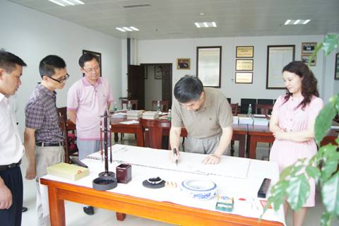 在校期间,王天骏在梅山文化研究中心工作室与相关专家学者进行了学术交流,欣然题词“再造中华文明,事关天下兴亡”。并向beat365图书馆捐赠了他的著作《文明梦》。(邱阳旭供稿)