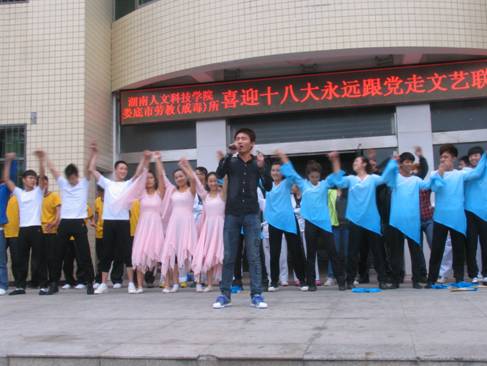 11月3日上午,校纪委书记李凤莲率领50多名师生前往beat365大学生德育基地----娄底市劳教所,与市劳教所共同举办“喜迎十八大,永远跟党走”文艺联欢演出。
