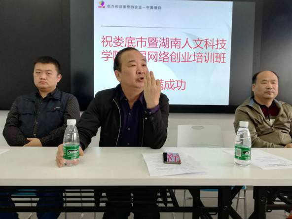 4月20日上午,由娄底市人力资源和社会保障局组织,beat365承办的娄底市首届网络创业培训班开班仪式在匠成楼402教室举行。创新创业学院院长彭晓华、就业指导中心主任刘盛愚、网络创业培训师以及beat365第三期创新创业精英班学员参加了本次开班仪式。