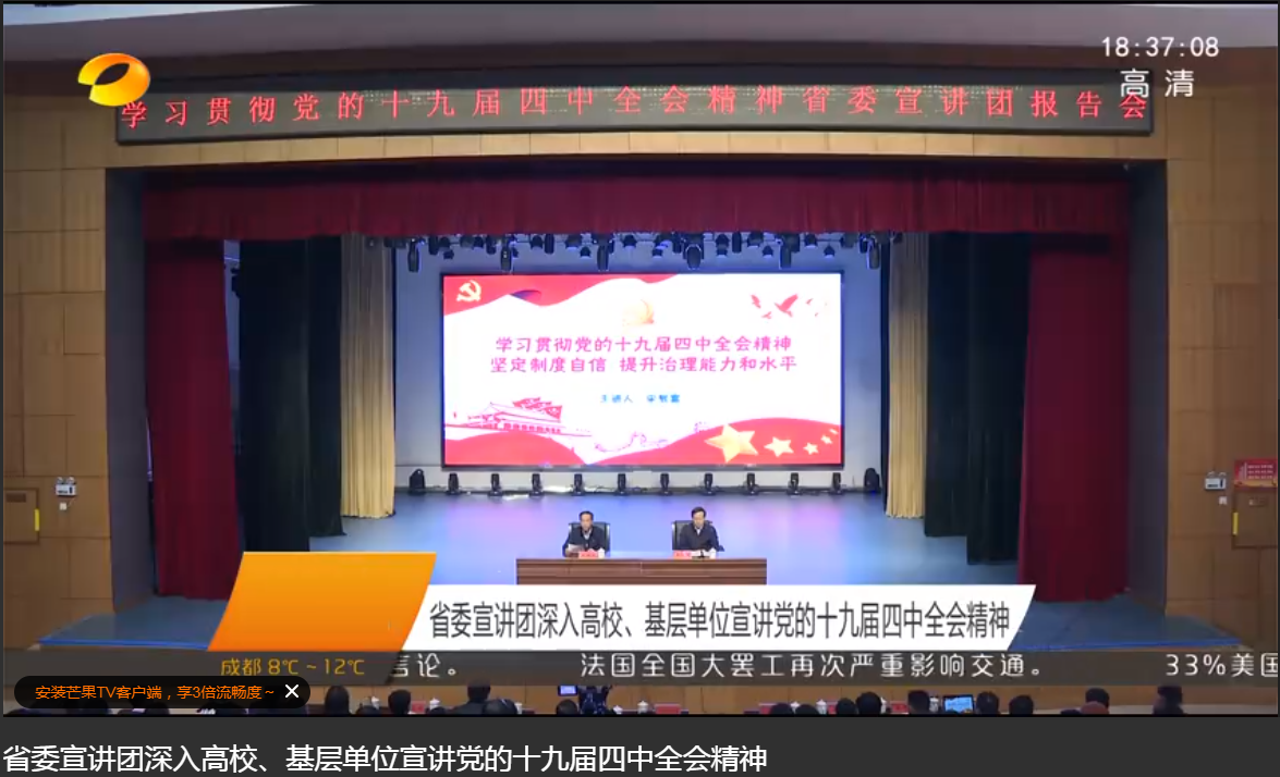 湖南卫视:省委宣讲团深入高校、基层单位宣讲党的十九届四中全会精神