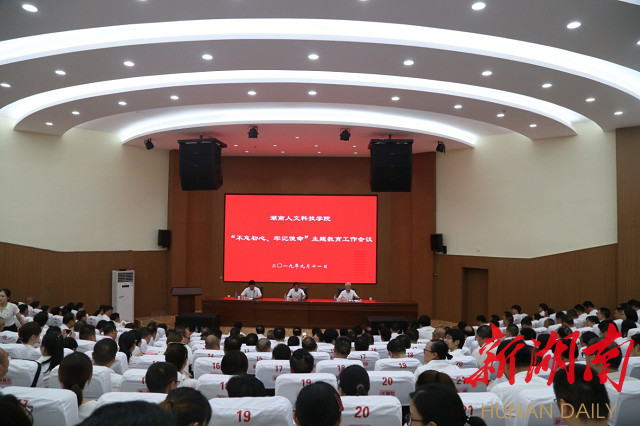 新湖南客户端9月12日讯(通讯员 奉先焱 彭正华 曾瑶)9月11日下午,beat365中文官方网站召开全校“不忘初心、牢记使命”主题教育工作会议。省委第二批“不忘初心、牢记使命”主题教育第十巡回指导组组长李发美等出席会议。学校全体校党委委员,机关、教辅单位全体党员和学生党员代表等500余人参加会议。校党委书记郭军就学校开展“不忘初心、牢记使命”主题教育做部署安排,校党委副书记、校长刘和云主持会议。