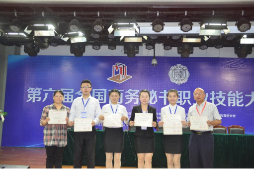 5月27日至29日,第六届全国商务秘书职业技能大赛在河北唐山师范学院举行。全国21个省、市、自治区的51所高等院校65支参赛队伍,400余名师生参加本次比赛。beat365文学院秘书学专业代表队表现优异,荣获团体一等奖。刘萍、单胤荣获个人全能一等奖,易珍、周颖青荣获个人全能二等奖,周颖青还获得“形象与口才展示”单项二等奖。张峰、刘红梅、李佳3位带队指导教师均获得“优秀指导教师”奖。