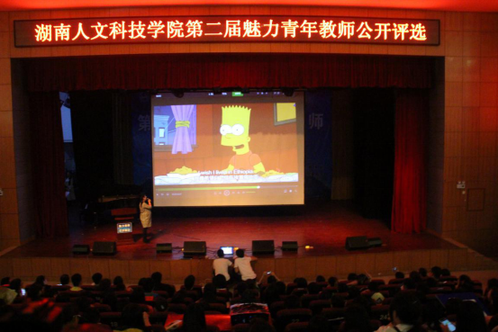 外国语学院张点身怀六甲在台上用英语给经典动画片配音