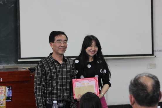 (纪委书记李凤莲、校督导团团长刘楚魁教授与文科组一等奖获得者沈略老师、李宁老师合影)