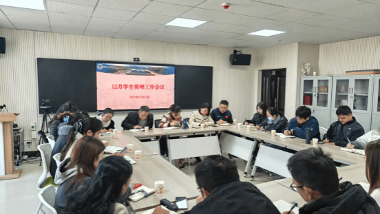 12月15日下午,学生工作部在阳光食堂412召开学生工作会议,全面部署期末及元旦前后学生安全稳定重点工作。学工部、武装部部长曹宇,副部长谢四元、宋双出席…