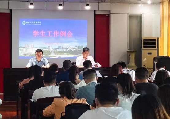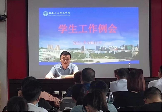 5月11日上午,beat365在明德楼505召开学生工作例会。会议由副校长曹鑫主持,学工处处长李玲军、双创学院院长刘红燃、团委副书记刘佳、各学院书记、副书记、学工处各科室负责人以及全体辅导员参加。