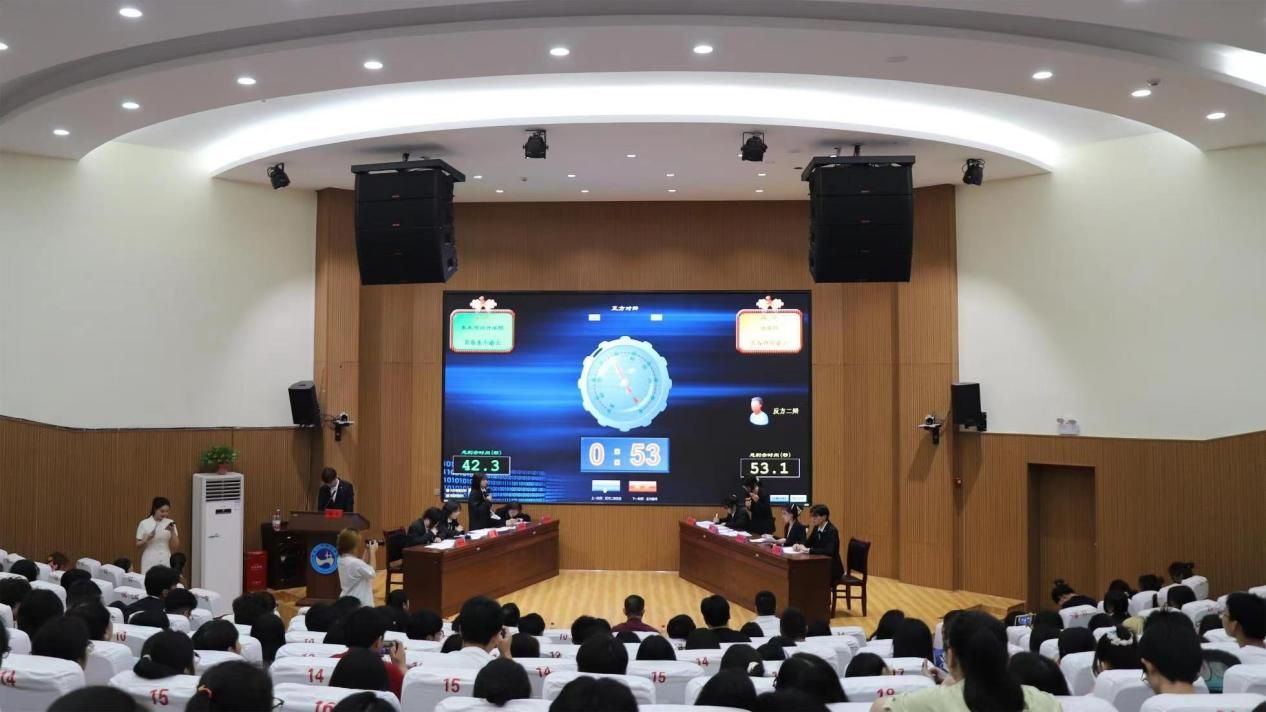 4月28日晚上,晋级决赛的法学院和美设院代表队以“青春终将/永不逝去”为辩题在匠成楼报告厅展开巅峰对决。本次比赛邀请到文学院党总支书记尹钟宏、美设院党总支书记阳立新、法学院党总支副书记刘景春、学生工作处副处长谢四元、学工处教育管理科科长宋双五位老师担任评委。在比赛过程中,参赛选手们通过引经据典论证论点,自由辩论环节双方选手慧心妙舌、互不相让,给现场观众带来一场视听盛宴。最后经过评委们的专业评审和讨论,法学院代表队获得本次比赛的冠军。