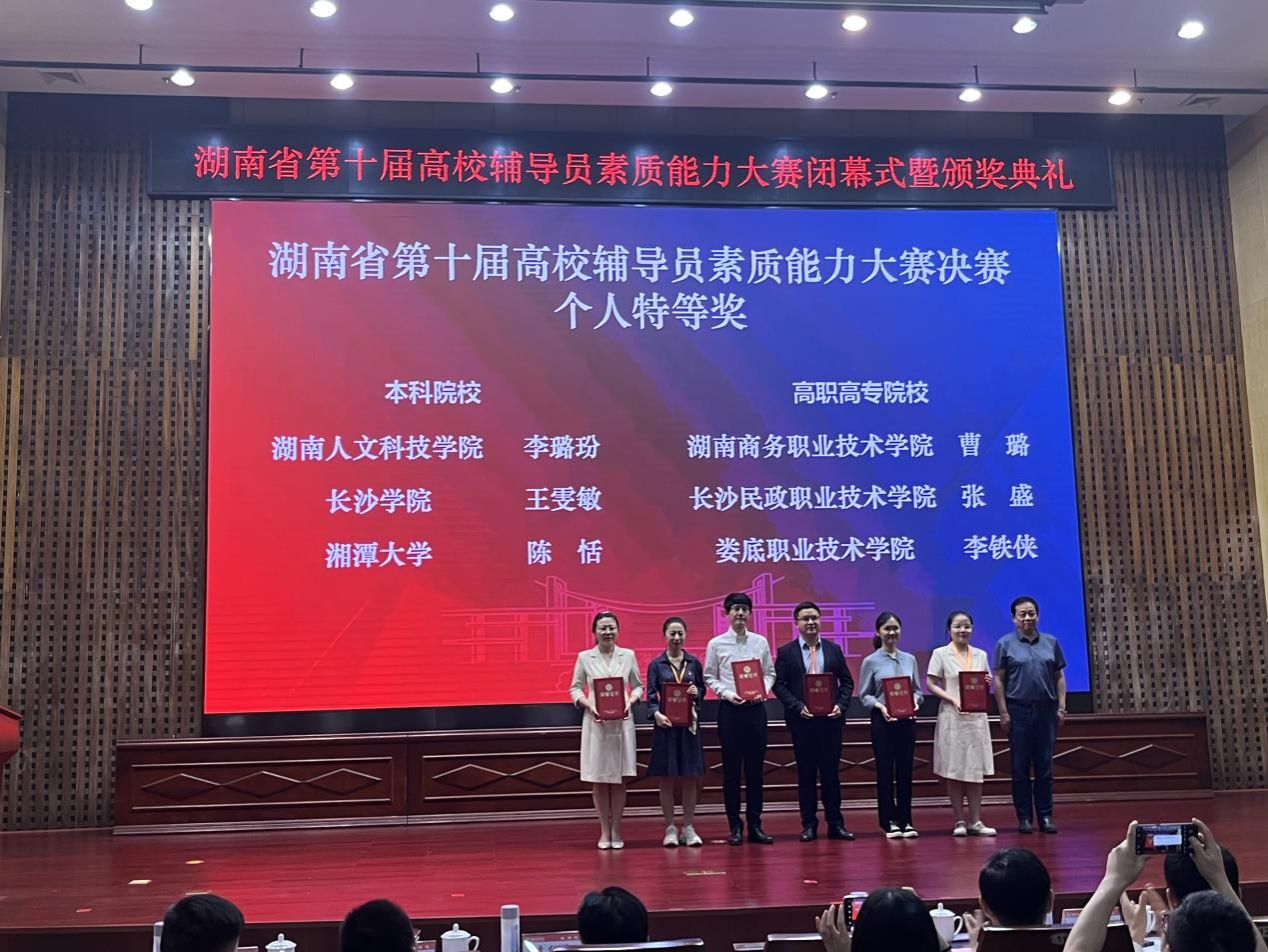 5月30日至31日,由中共湖南省委教育工委、湖南省教育厅主办的湖南省第十届高校辅导员素质能力大赛决赛在湖南工程学院隆重举行,beat365材料与环境工程学院辅导员李璐玢荣获大赛特等奖。