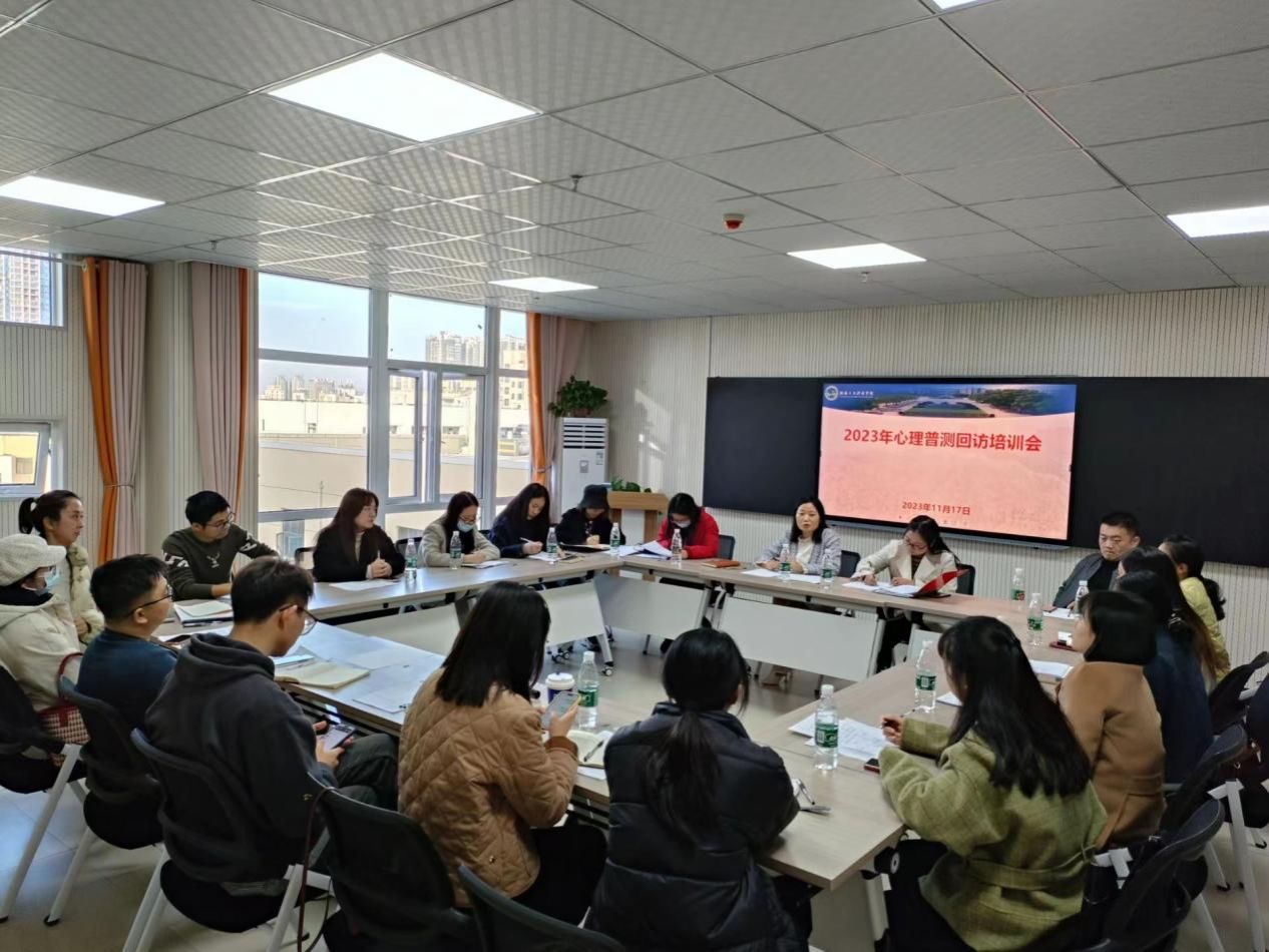 心理健康教育与咨询中心教师邵海对2023年心理普测情况进行了汇报,并就回访人员抽选、回访程序、回访登记表、注意事项以及可能遇到的问题等方面作了培训与交流,明确了回访的具体流程和工作方法,为后续工作的开展指明了方向。