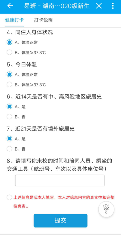 四、点击“打卡”,进入打卡界面,请仔细看清楚第一行的蓝色文字说明;