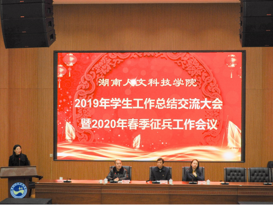2020年1月8日晚,beat3652019年学生工作总结交流大会暨2020年春季征兵工作会议于匠成楼报告厅举行。党委书记郭军,党委委员、宣传统战部部长谢柳出席;组织部、人事处、后勤基建处、监察处、团委、学工处、武保处等职能部门领导,各学院总支书记、副书记,全体辅导员、班主任参加了本次会议;会议由党委委员、副校长刘铁峰主持。