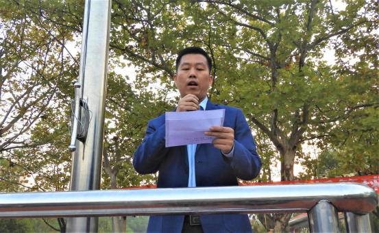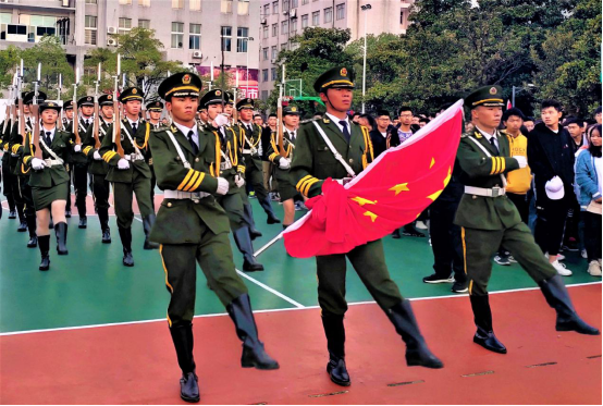 6点45分,升旗仪式正式开始,在全体师生的注目下,国旗护卫队队员们护送国旗入场,伴随着庄严嘹亮的国歌,五星红旗冉冉升起。升旗仪式后,由来自体育学院的学生代表刘子正做国旗下讲话,他以“养成好习惯,走好每一步”为主题,呼吁同学们做好身边的每件小事,养成良好的学习生活习惯,塑造美好人生。