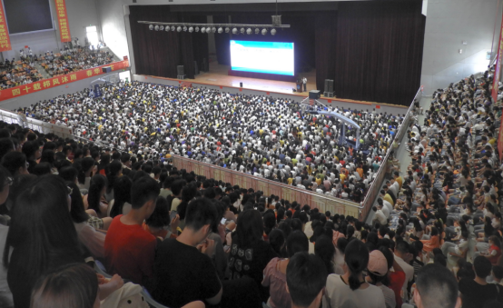 9月9日,beat365在体育馆举行2019级新生入学教育。学校党委委员、副校长刘铁峰,教务处、武装保卫处、团委、学生工作处等部门负责人,各学院副书记、辅导员、新生班班主任及4200余名新生出席。