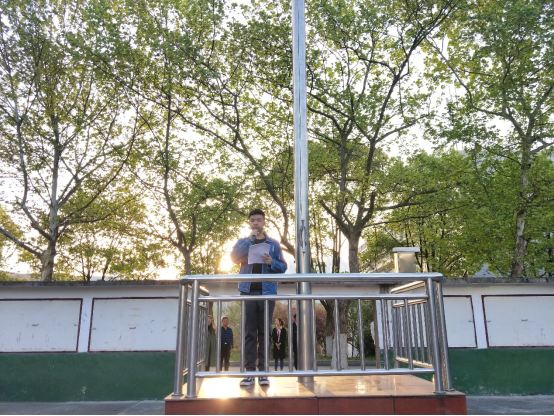 升旗仪式过后,2017级学生代表冯睿作国旗下的演讲。他针对当前大学生中存在的学风问题,呼吁同学们树立好人生目标,明确自身未来发展方向,端正学习目标,持之以恒,以创建优良学风为己任。