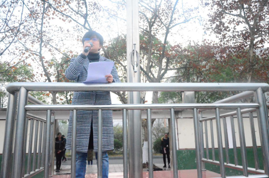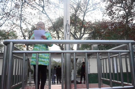 升旗结束后,2017级学生代表黄海钰作主题为“诚信考试”的国旗下讲话。她强调了作弊的危害性,呼吁同学们自觉遵守考试纪律,发扬诚信为本的优良传统,切忌触碰诚信的根本。
