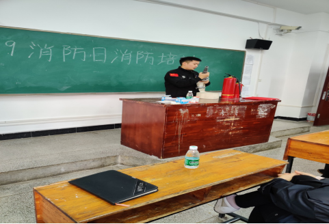 11月3日上午,学工处、武保处联合保利天创物业公司在致远楼114教室为全体学生宿舍门卫及保洁员举办了一场消防知识安全培训。