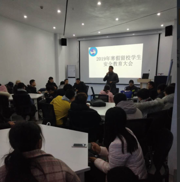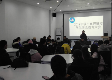 学工处刘红燃处长代表学校对留校学生表达了良好的祝愿,强调了留校学生在寒假期间一定要注意人身及财产安全,并对留校期间的一些注意事项做了重点强调;武保处李安详科长对学生留校期间的交通安全、用电安全及防范网络诈骗等方面进行了讲解,并用实例强调了一定要注意学生的人身财产安全。