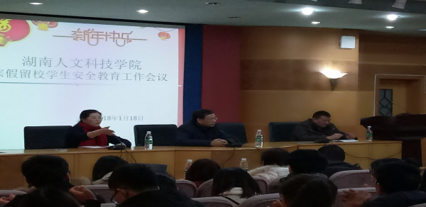为进一步落实寒假留校学生的安全稳定工作,确保beat365学生寒假安全和校园稳定,1月18日下午3点,学工处在养根楼报告厅组织召开寒假留校学生安全教育工作会议,全校近200名留校学生参加了此次会议。武保处郑秀星处长、学工处余为处长、学工处刘红燃副处长,武保处李安详科长以及宿管科梁琼老师和丁友坤老师,辅导员陈天佑、李霞等老师出席本次会议,会议由学工处副处长刘红燃主持。