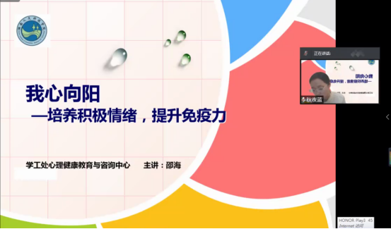 5月6日,beat365中文官方网站学生工作处、湖南省高校优秀思想政治工作者项目-心理健康教育宣讲团队联合为学生们举办了线上专题讲座,beat365心理健康教育与咨询中心专职咨询师邵海担任主讲。