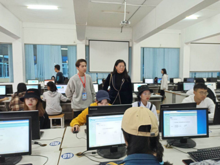 (院部负责人指导同学操作)