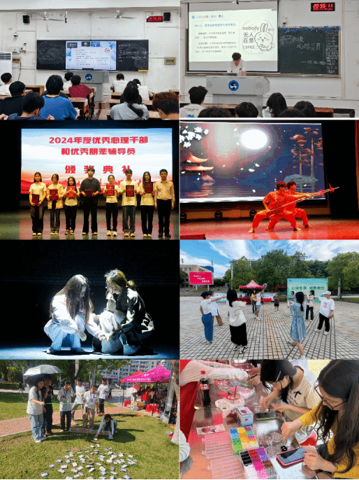 活动秉持“五育并举促进心理健康”的核心理念,旨在全面提升学生心理健康素养,协同赋能学生成长。各项目紧扣学生心理发展需求,以五育并举视角精心设计,形式丰富、内容扎实。一是学生工作部联合教育学院开展“守心灵净土 拥生命晴空”主题升旗仪式,以庄严仪式强化爱国情怀与生命关怀的联结,吹响守护心灵、拥抱阳光号角。二是组织“心理健康教育现场宣传活动”,设立宣传海报、手册和展板,向学生详细介绍心理服务的内容及预约方式。三是举办“心润生命”525心理健康游园会,通过灵犀乒乓、日不落气球等活动,寓教于乐,有效帮助同学们释放压力,感受生命的活力。四是举行“心光剧现,逐光而行”校园心理情景剧大赛,引导学生通过自编自导自演的形式,培养理性平和、乐观进取的积极心理品质。五是开展“爱己如友,心暖花开”主题班会活动,帮助学生认识自我关怀的重要性,掌握实用方法,提升自我关怀能力。六是举办“育心铸魂,育体强身”心理中心开放日活动,鼓励学生在运动中缓解压力、焕发身心活力,体验运动对心理健康的积极促进作用。七是举行“用心沟通,搭建心灵桥梁”心理健康教育讲座,旨在提升学生人际沟通技巧,改善人际关系。八是组织“525心理健康教育日闭幕仪式暨优秀心理干部、朋辈辅导员表彰仪式”,进一步深化心理健康教育实效,总结心理健康月系列活动成果。