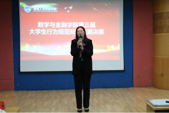 为进一步促进优良院风建设,树立良好的学习行为规范,并以最佳状态迎接学校本科教学审核评估,11月14日晚,数学与金融学院在养根楼报告厅举办了第三届校纪校规知识抢答赛。19级全体学生观摩了比赛,学工处处长刘红燃、学院党总支书记阳立新、副书记刘晔、全体辅导员出席并指导比赛。