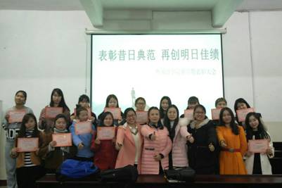 2017年3月8日晚上7:00,外国语学院“表彰昔日典范,再创明日佳绩”优秀学生表彰大会在播馨楼406室拉开帷幕。参加本次会议的有外国语学院党总支副书记刘莉书记,辅导员阳青老师、龙立平老师、肖婷老和曹瑜虹老师,以及各奖项的获奖人员,各班班长及团支书。