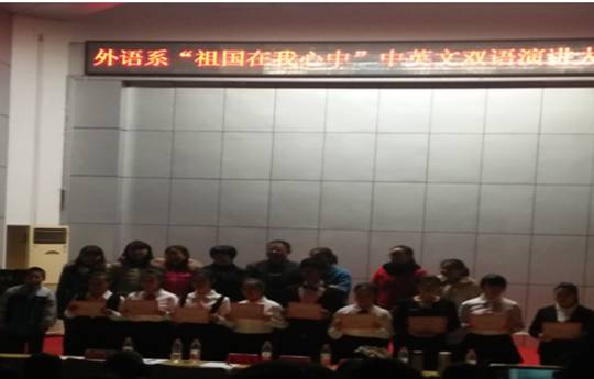 12月2日晚7点,由beat365中文官方网站外语系主办,beat365中文官方网站外语系学生会承办的“祖国在我心中”中英文双语演讲大赛决赛在匠成楼演播厅拉开了帷幕。学工处处长余为、外语系副主任卿逸豪,外语系副书记刘莉,大学生演讲比赛团队指导老师黄敏、贺靓担任了本次演讲比赛的嘉宾及评委。此外,外语系辅导员阳青、龙立平、肖婷老师出席了本次比赛。