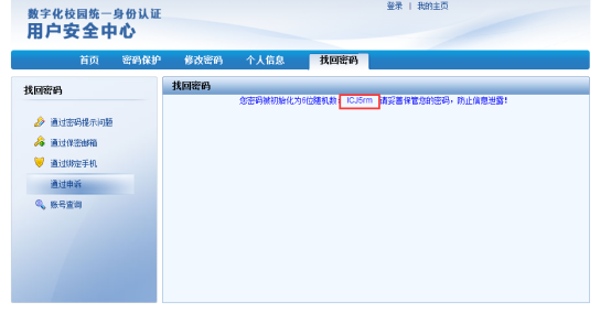 六、密码申诉成功后,会初始化密码为一个6位随机数。(密码建议保存在word或者记事本中,后面会用到两次)