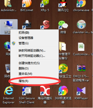 (一)在桌面上右键“计算机”,点击菜单“属性”