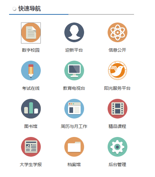 1、打开学校网站主页(校内:10.1.1.1, 校外),在主页右侧“快速导航”中点击“数字校园”,输入用户名(为学号)和密码(为身份证后六位,如果最后一位是字母的用大写字母)进入“数字化校园平台个人服务中心”。