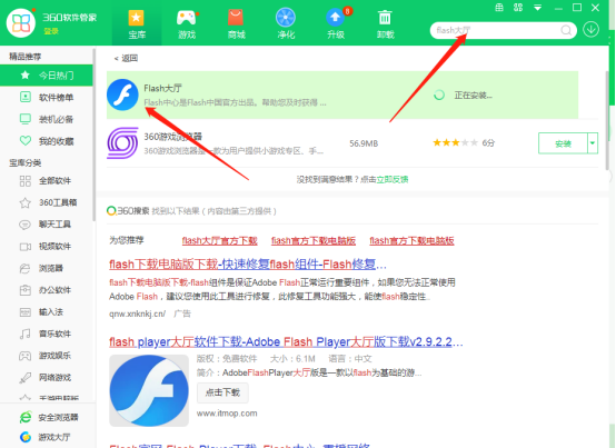 搜索“flash大厅”并安装
