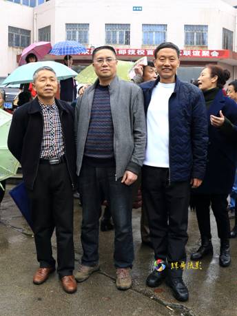 图六 热情为校友提供服务的校友办主任刘光辉与筹委会主任龙云生、会务组成员王佐芳合影留念。