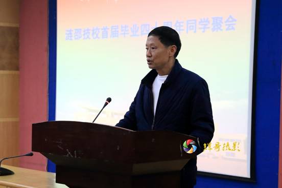 原涟邵技校首届校友毕业40周年联谊聚会筹委会主任龙云生主持座谈会并第一个发言。学校党委委员、组织部部长金志方代表学校热诚欢迎校友们的到来、介绍了学校基本情况并勉励校友们健康快乐地生活。曾任电工二班班主任、担任四个班政治课的吴松德老师代表所有健在的原涟邵技校首届学生的任课教师发言,他以一个“牛”字高度赞扬了首届学子们的拼搏精神、创业意识和辉煌成就。苏清桂等五位校友代表登台谈了各自的工作经历和人生感言。