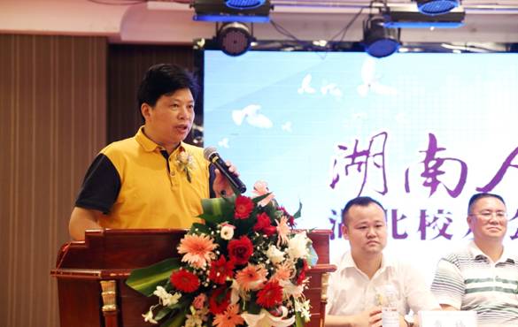 在热烈的掌声中,刘铁铭副书记为湖北校友会授牌。最后,党委副书记、校长刘和云发表了热情洋溢的讲话,代表学校对湖北校友会的成立表示热烈的祝贺!对多年来一直关心支持学校建设发展的校友及社会各界朋友们表示衷心的感谢。他介绍了学校近年来在办学规模、办学层次、学科竞赛、就业创业、科研成果、平安校园、文明校园建设等方面的建设发展情况。他说,学校所取得的一系列成绩,与我们历届校友的关心支持是分不开的。湖北校友会的成立,肖亮等校友乐于奉献、勇于担当,不辞辛苦,做了大量卓有成效的工作,令大家深受感动。希望大家以此次湖北校友会成立大会为契机,加强联络,积极沟通,共同培育校友文化,聚心聚力聚智聚资支持母校建设发展。热情的邀请大家在今年母校40周年庆典时在海园相聚!